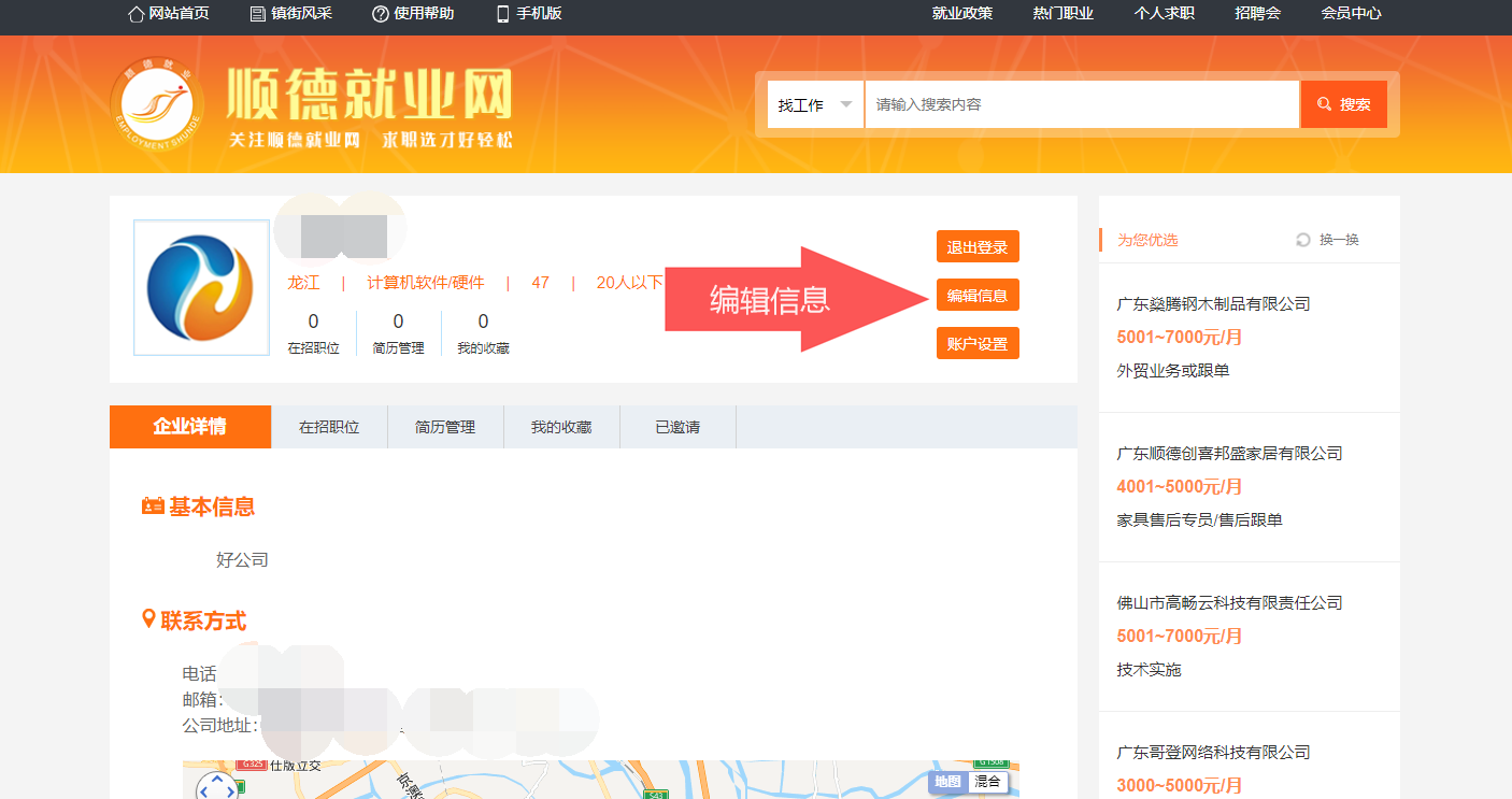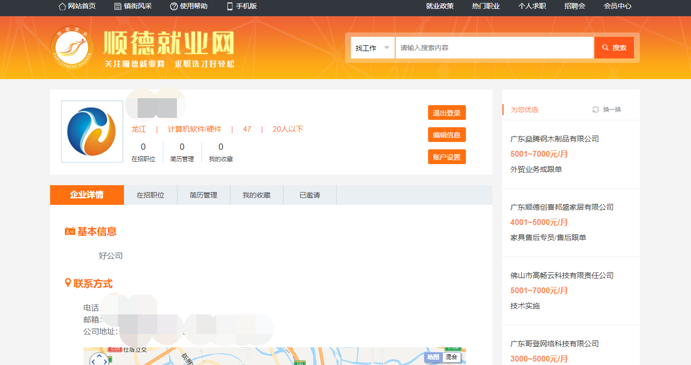 3、在招职位。添加发布职位、修改职位信息、删除职位。