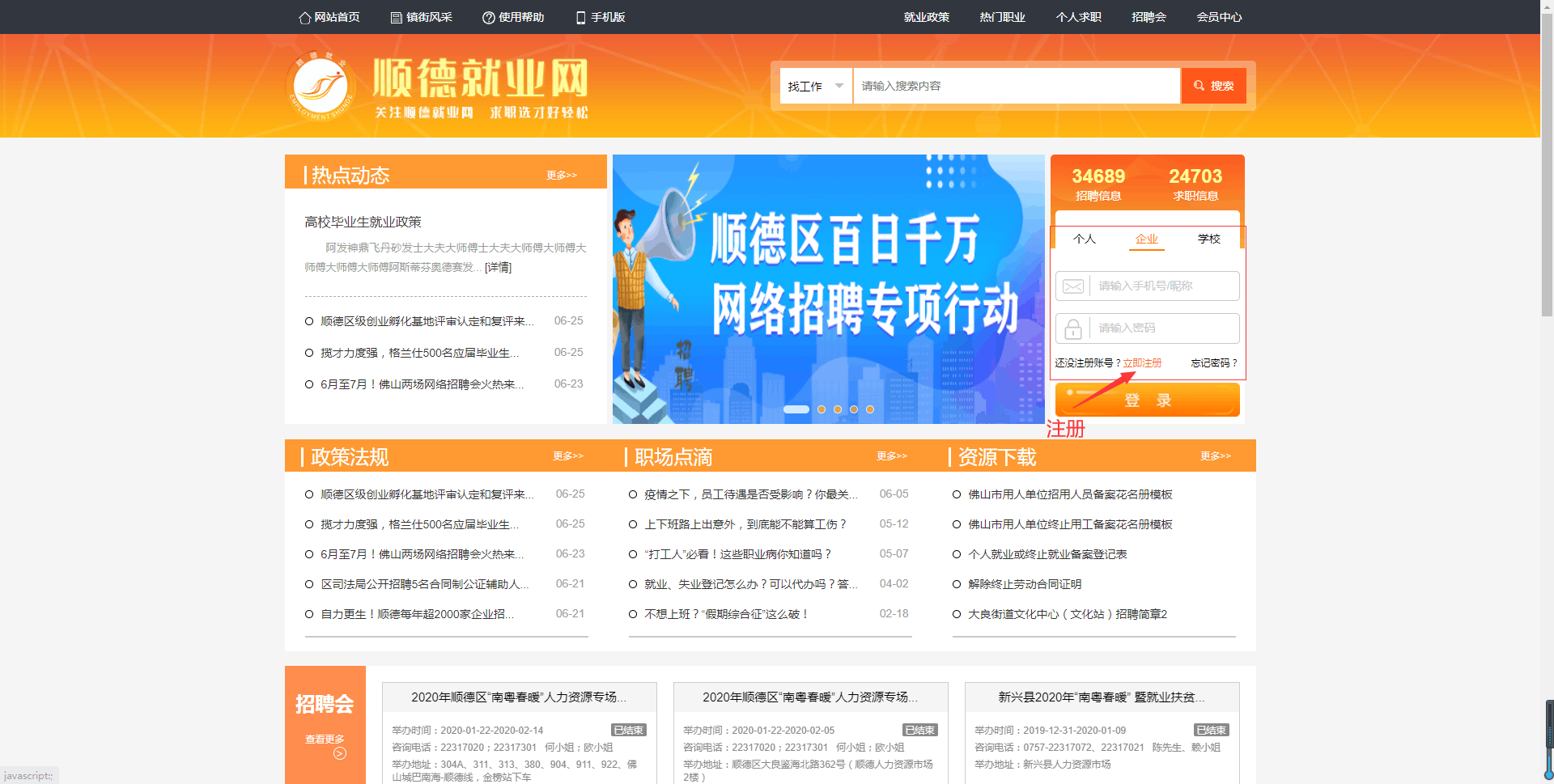招聘会。添加招聘岗位的信息,以及添加企业参会人员的信息;编辑完善企业参会的信息;保存并报名,等待审核通过。