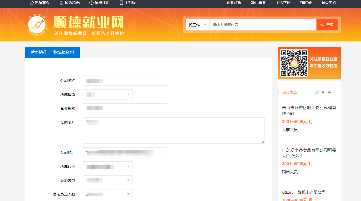 在招聘会的导航下,查找合适的招聘会,企业进行报名,填写基本信息。