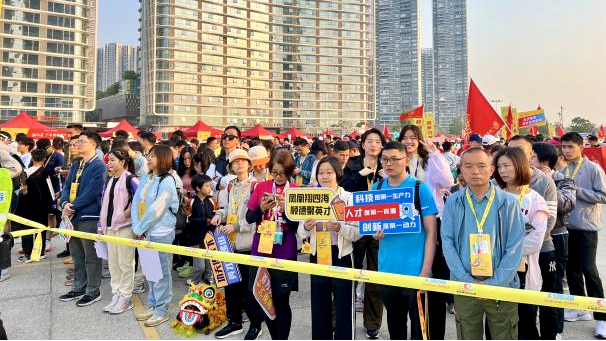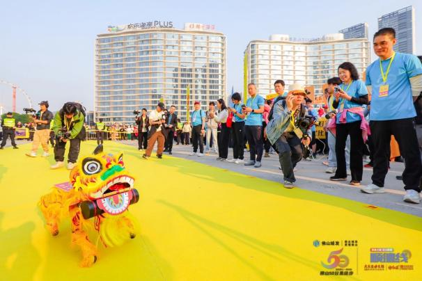 今年的高层次人才方阵还迎来了一位特别的徒步搭档——身穿醒狮服的机器狗。在方阵前,机器狗身穿佛山非遗的迷你醒狮服灵活摆动,背上搭载了顺德企业制造的最新无人机,或与舞狮团互动,或炫酷展示,一亮相即吸引一众高层次人才、媒体纷纷围观拍照。传统文化与佛山智造,跨界碰撞出“敢为人先”的发展魅力;一场徒步活动,在这一刻变成了一场“科技秀”“智造秀”,人与AI的互动让今年的徒步生动有趣、别具一格。