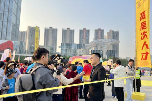 上午,天朗气清,阳光和煦,春风徐徐。高层次人才及其亲友已提前来到欢乐海岸PLUS集中点,签到领取电子纪念牌、纪念票根,领取后,各位人才互相拍照留念,或开展热身运动。整个活动现场,人头攒动,欢声笑语,气氛相当热烈。