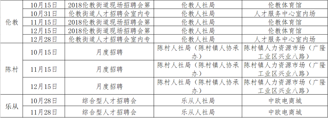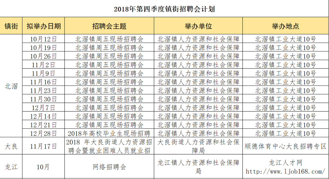 2018年第四季度镇街招聘会来啦!
