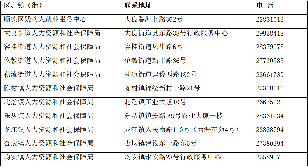 有关参考资料可登录顺德区残疾人就业信息网(http://www.sdcjrjy.gov.cn)查询或向所在镇(街道)人力资源和社会保障局、村(社区)委员会咨询索取。