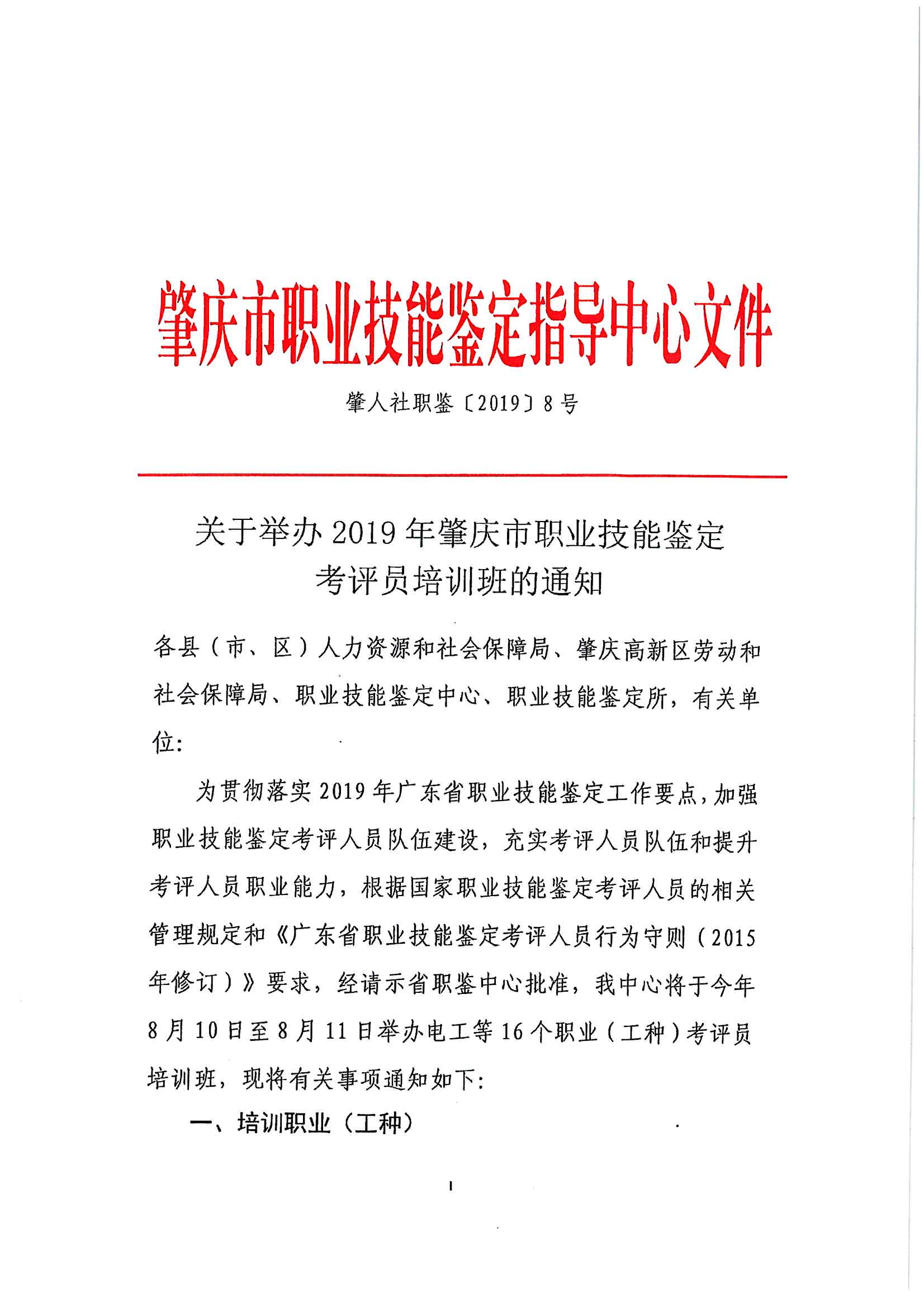 关于举办2019年肇庆市职业技能鉴定考评员培训班的通知