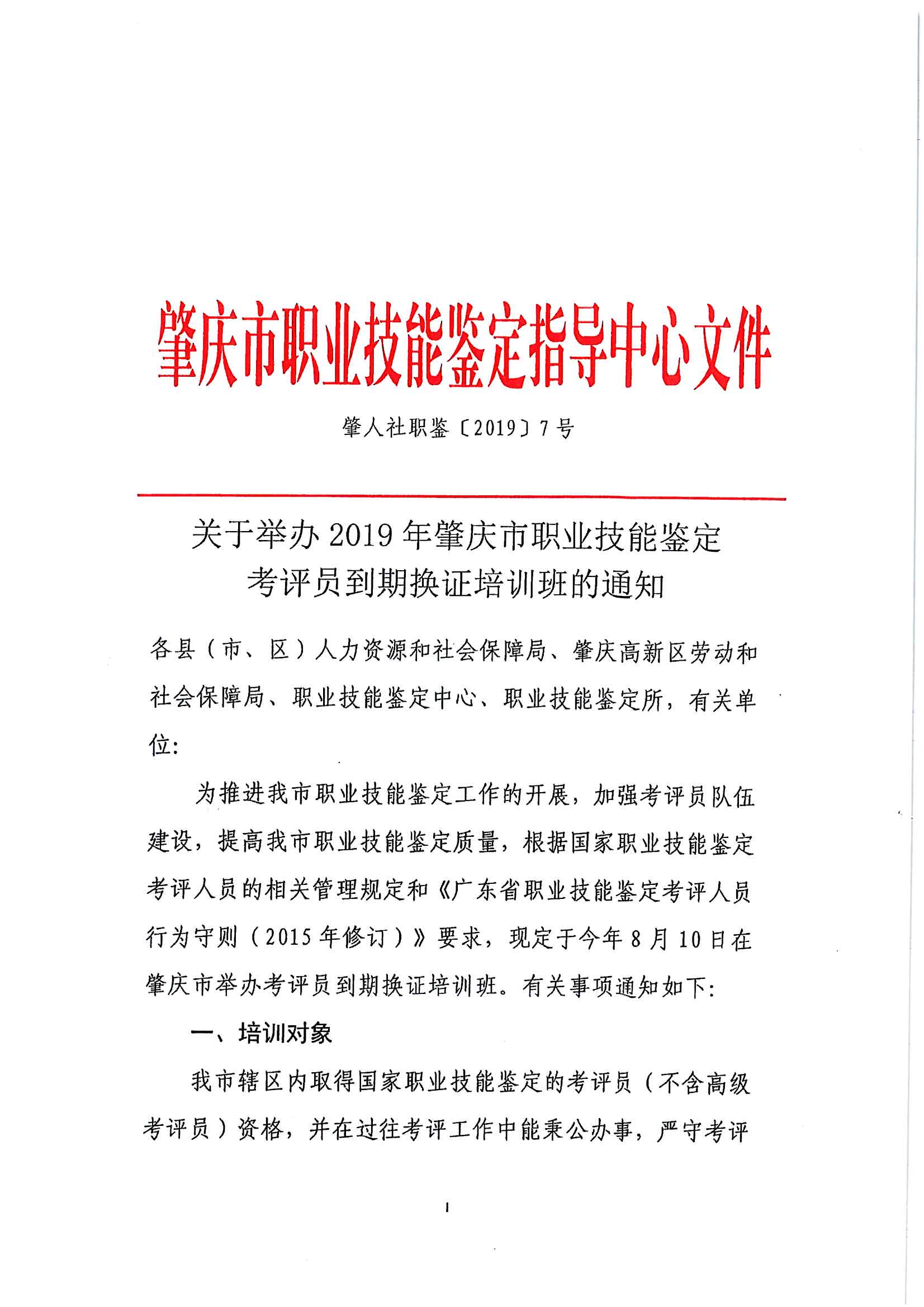 关于举办2019年肇庆市职业技能鉴定考评员到期换证培训班的通知
