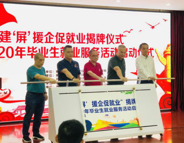 7月29日上午,由龙江镇人力资源和社会保障局主办,龙江镇团委、龙江镇大学生联谊会协办的“建‘屏’援企促就业”揭牌仪式暨2020年毕业生就业服务活动启动仪式在文华居委会党群活动中心隆重举行,龙江镇副镇长、镇人社局局长毕景刚,镇人社局常务副局长李伟廉,文华居委会书记龙加燊等嘉宾出席活动,活动吸引了镇内100多名高校毕业生参加。