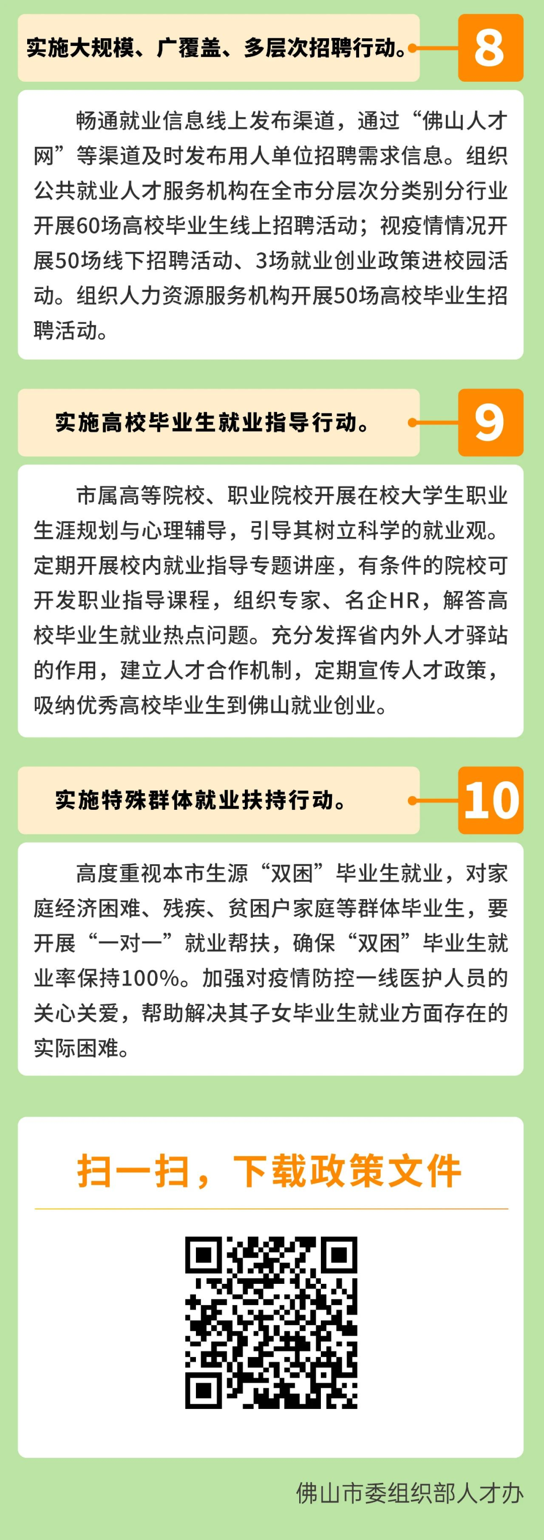 日前,佛山市委组织部联合市人力资源和社会保障局印发《关于促进应届高校毕业生就业工作的通知》(以下简称 《通知》),提出实施十大行动,助力应届高校毕业生就业。其中,应届生到民企就业每人补3000元。
