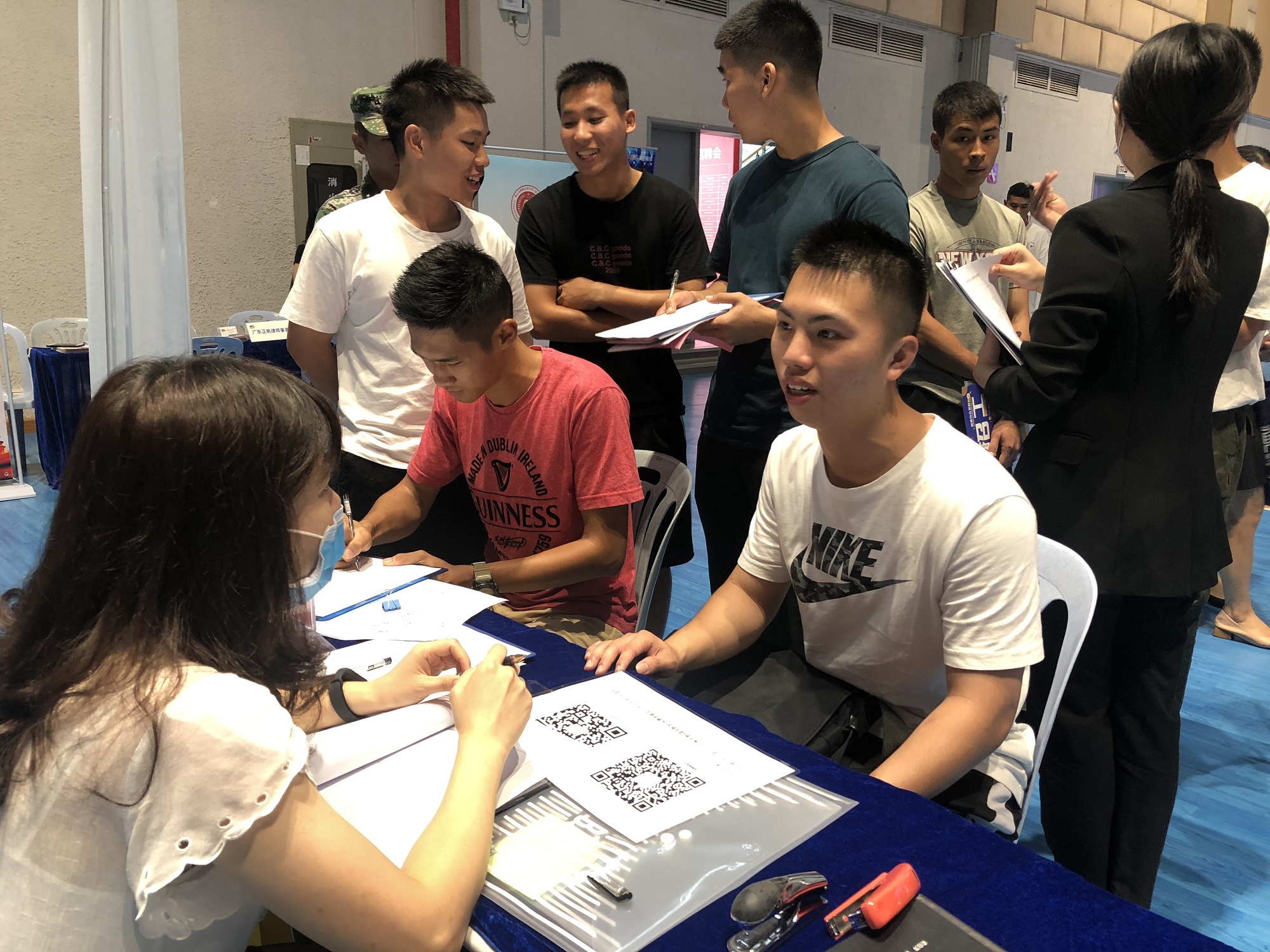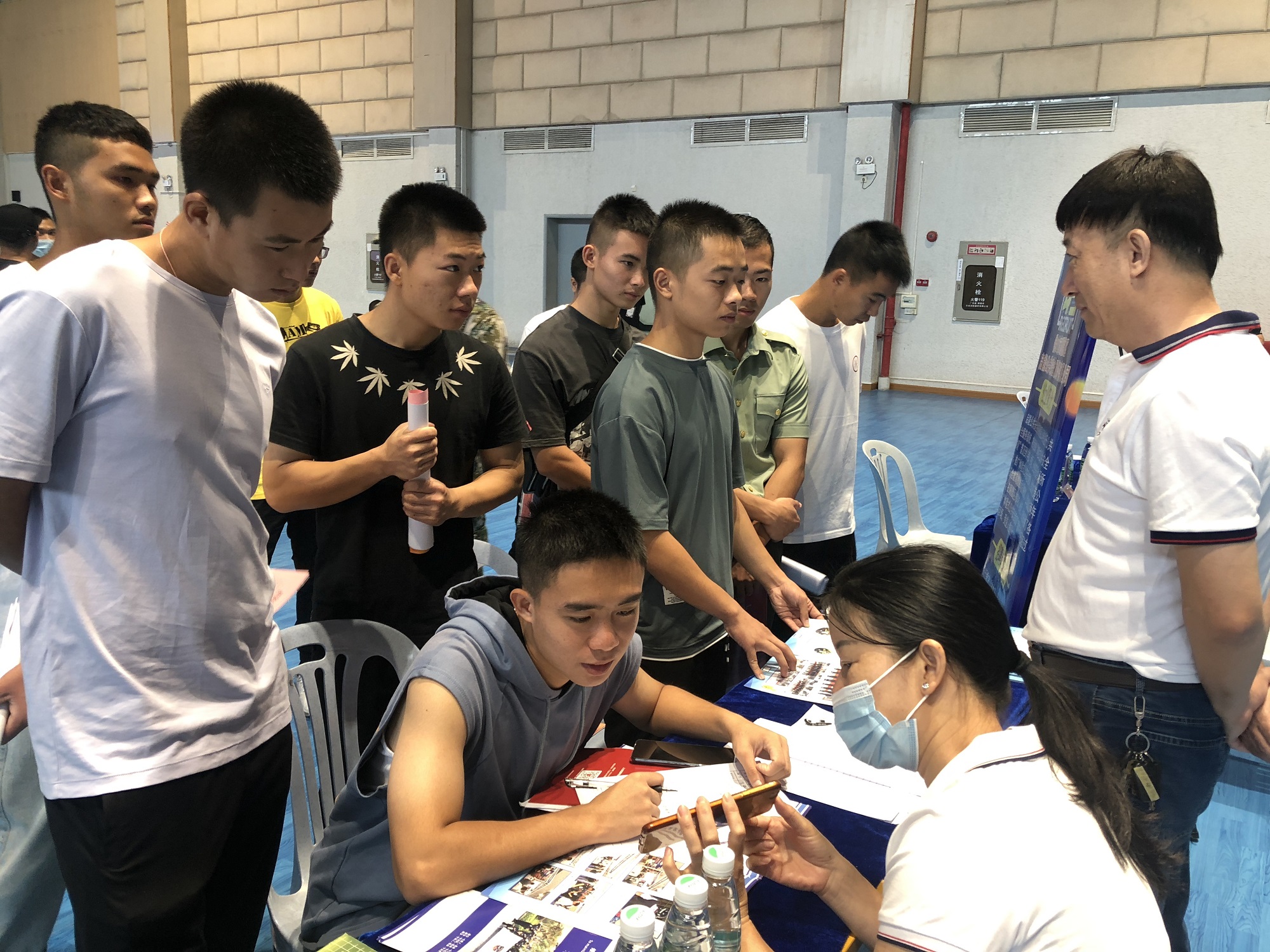 (↑参加招聘会的既有刚离开部队的“新兵”,也有退役多年的“老兵”,他们政治觉悟高、身体素质过硬,有的还具有一定专业技能,深受企业青睐。)