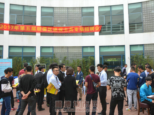 4月15日,“2017年第五届顺德区退役士兵专场招聘会”在顺德职业技术学院顺利举行。天之龙地产、广东小冰火人、中国平安保险等10多家知名企业携将近80个岗位进场设摊招聘,吸引了全区100多名退役士兵前来求职,其中与单位初步达成就业意向的有40多人。