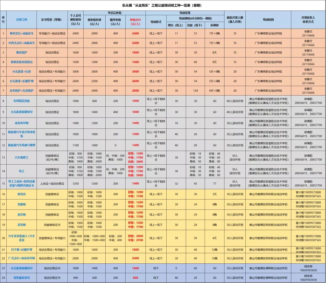 现在,乐从镇公益性职业技能提升培训班正式接受报名,成功考证则能领取补贴相当于免费上课!