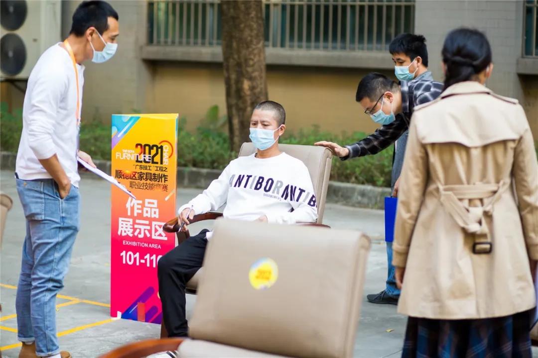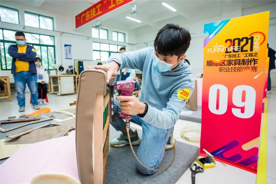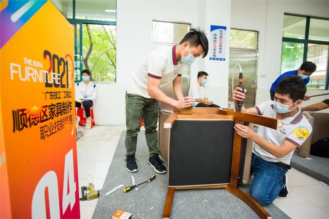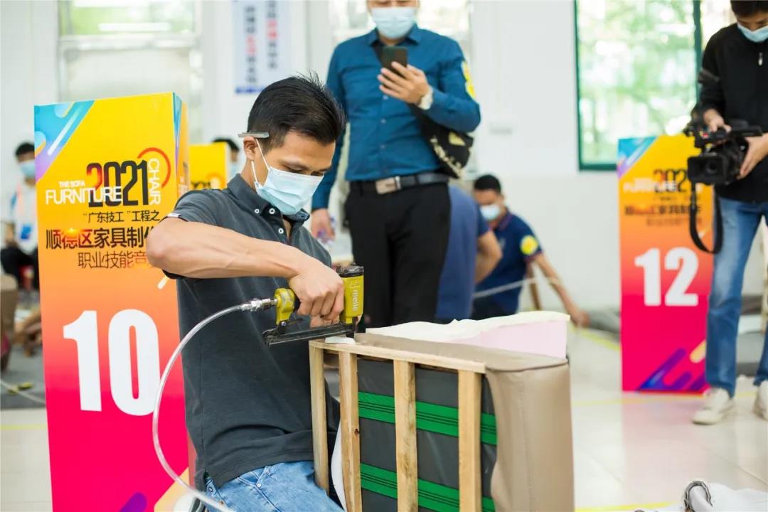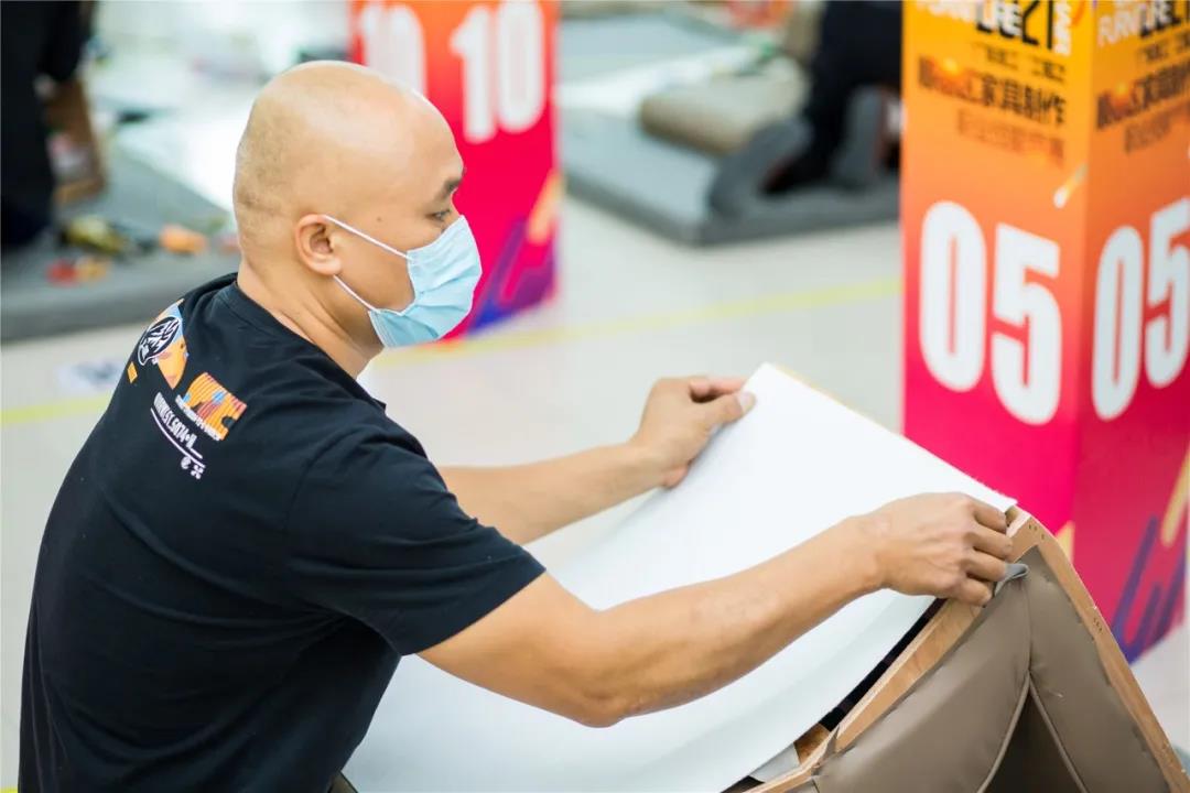 急促的“噼啪”声,默契的配合,最快14分23秒完成产品制作。来自全区31支队伍同台竞技,比赛中,选手们不仅要比快,更要比巧。在扪皮环节中,选手们要在规定的20分钟时间,把办公椅扪得既要饱满,还要线条对称。选手们精湛的技术、娴熟的扪皮能力令现场评委和观赛嘉宾赞不绝口。竞赛产生前8名获奖队伍。大会为竞赛获得者举行了颁奖仪式,佛山市顺德区腾威家具实业有限公司得竞赛第一名。