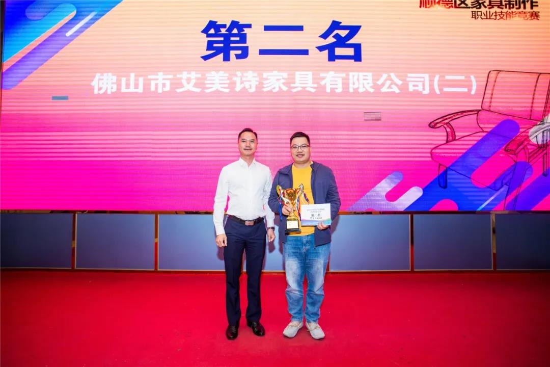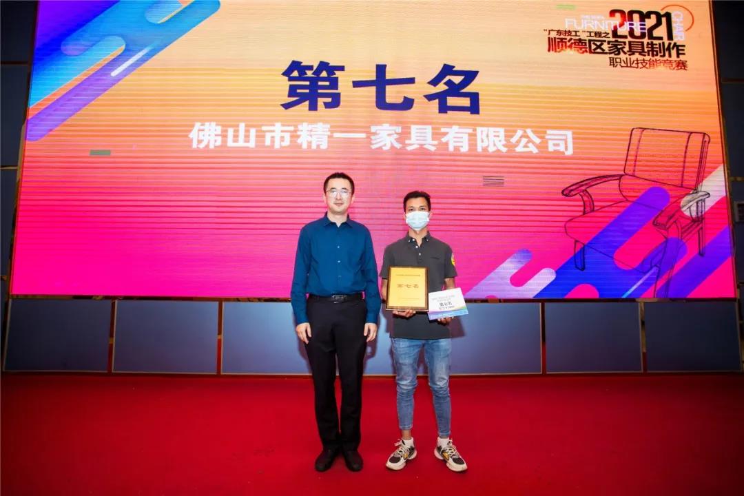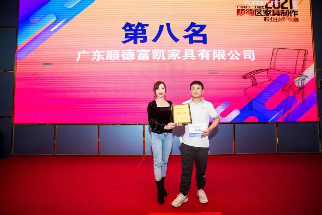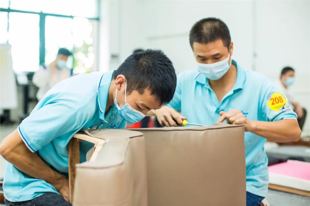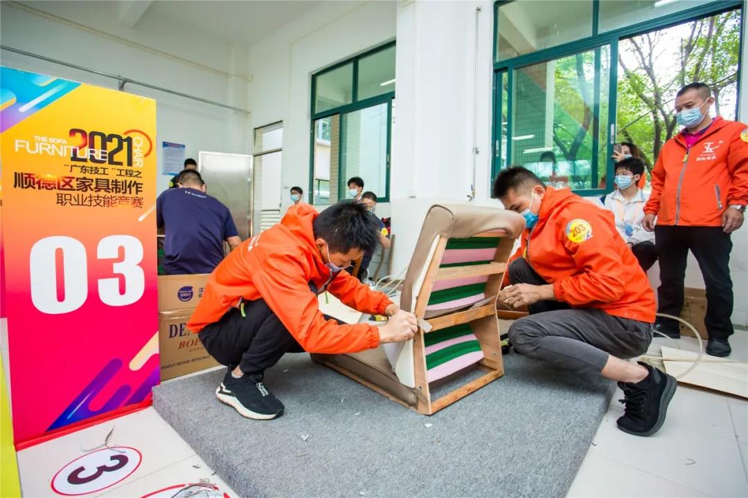 急促的“噼啪”声,默契的配合,最快14分23秒完成产品制作。来自全区31支队伍同台竞技,比赛中,选手们不仅要比快,更要比巧。在扪皮环节中,选手们要在规定的20分钟时间,把办公椅扪得既要饱满,还要线条对称。选手们精湛的技术、娴熟的扪皮能力令现场评委和观赛嘉宾赞不绝口。竞赛产生前8名获奖队伍。大会为竞赛获得者举行了颁奖仪式,佛山市顺德区腾威家具实业有限公司得竞赛第一名。