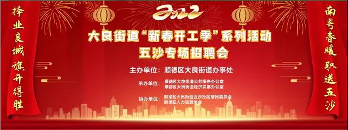 招聘会地址:大良五沙社区体育公园(新悦路11号)