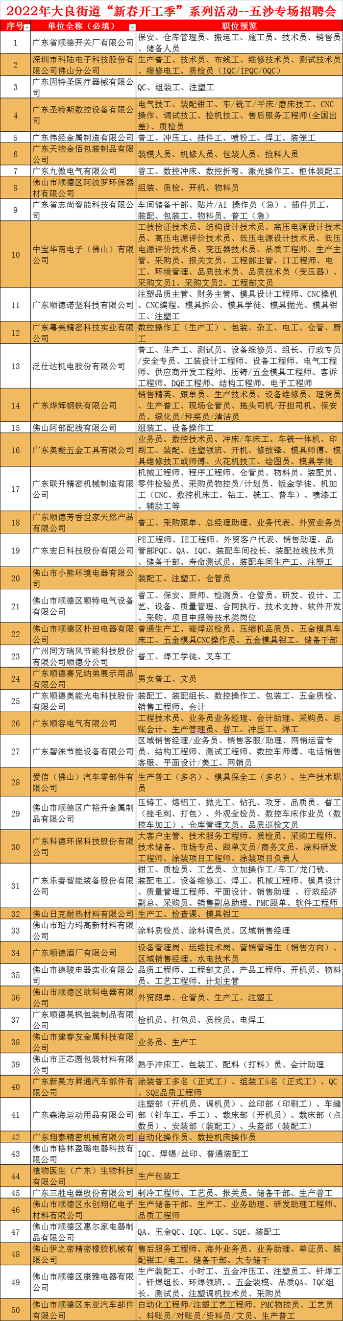 智能科技、文职、制造业、商务服务、营销……2月23日(星期三),2022年大良街道“新春开工季”系列活动五沙专场招聘会即将开启!多类岗位绝对有你的位置!具体详情一起来看看。