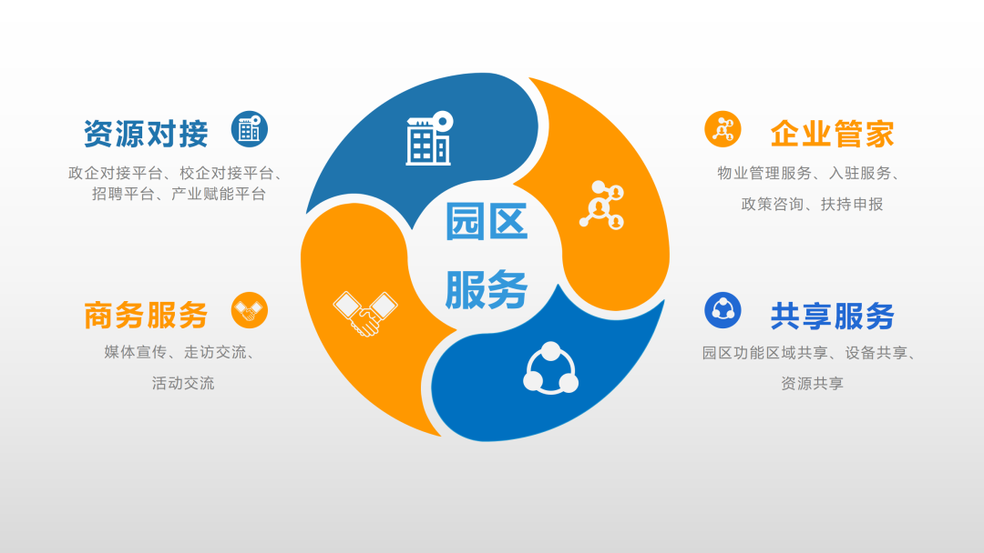 目前,产业园招商引进的服务业态重点以高端猎头、人才管理培训等业态为主,补齐人力资源服务产业链。