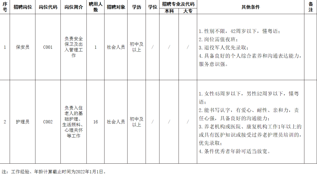 现因工作需要,拟面向社会公开招聘工作人员17名,招聘职位包括保安员、护理员。有关事项公告如下: