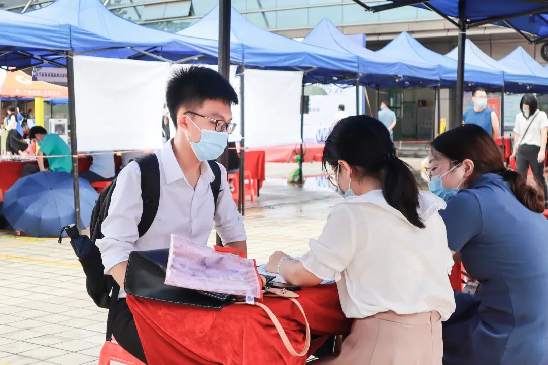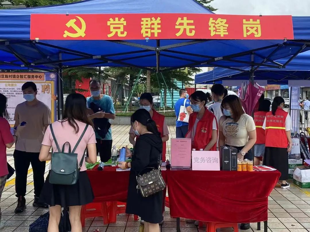 除了企业招聘,陈村执法办、市监所、司法所、综合办、城建办、派出所、禁毒办也开设了咨询宣传摊位。陈村镇党建工作办公室在党群先锋岗上派驻了4名党建指导员,为求职人员提供“一站式”党建综合咨询服务,包括组织关系接转、流动党员登记、志愿服务报名登记、入党申请咨询等。党群先锋岗的党建综合服务咨询,将服务辐射到园区、周边的企业、求职来访人员,把党建政策信息服务到“家门口”,共同营造有温度、有力度的营商环境。