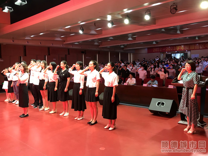 “我光荣加入顺德人民教师队伍,我庄严宣誓……”全体老师右手举拳庄严宣誓,铮铮誓言落地的同时,一份份责任被扛起。9月25日,2022—2023学年度顺德区中小学新任教师入职培训开班典礼暨首次培训活动在顺德职业技术学院报告厅举行。活动为新教师代表授予了入职徽章,并进行了第一次入职培训。