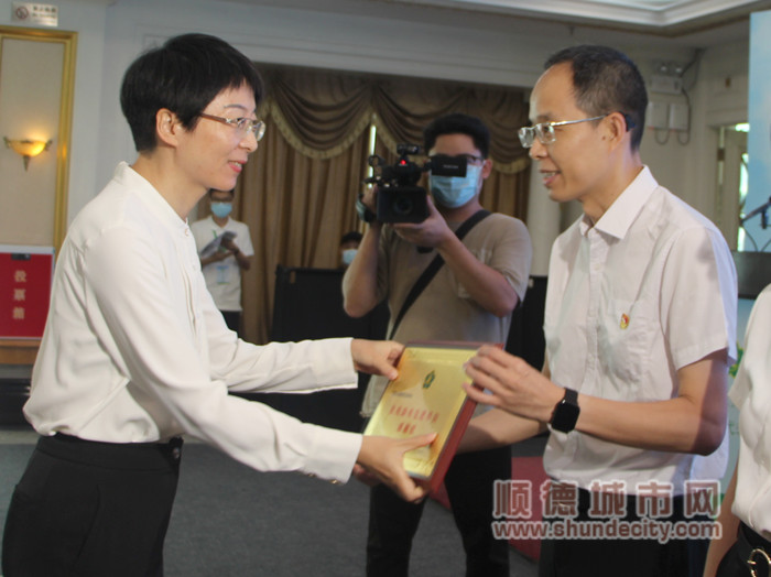 顺德区政府副区长朱凌霞向扶残助残先进单位授牌。