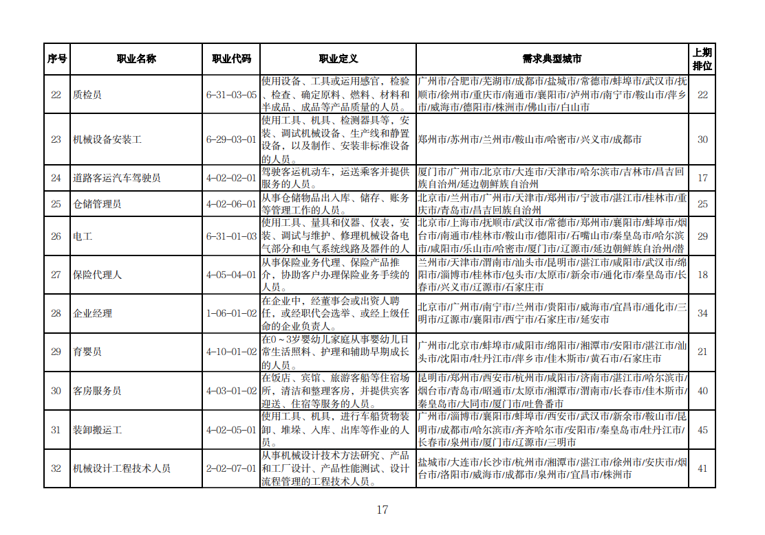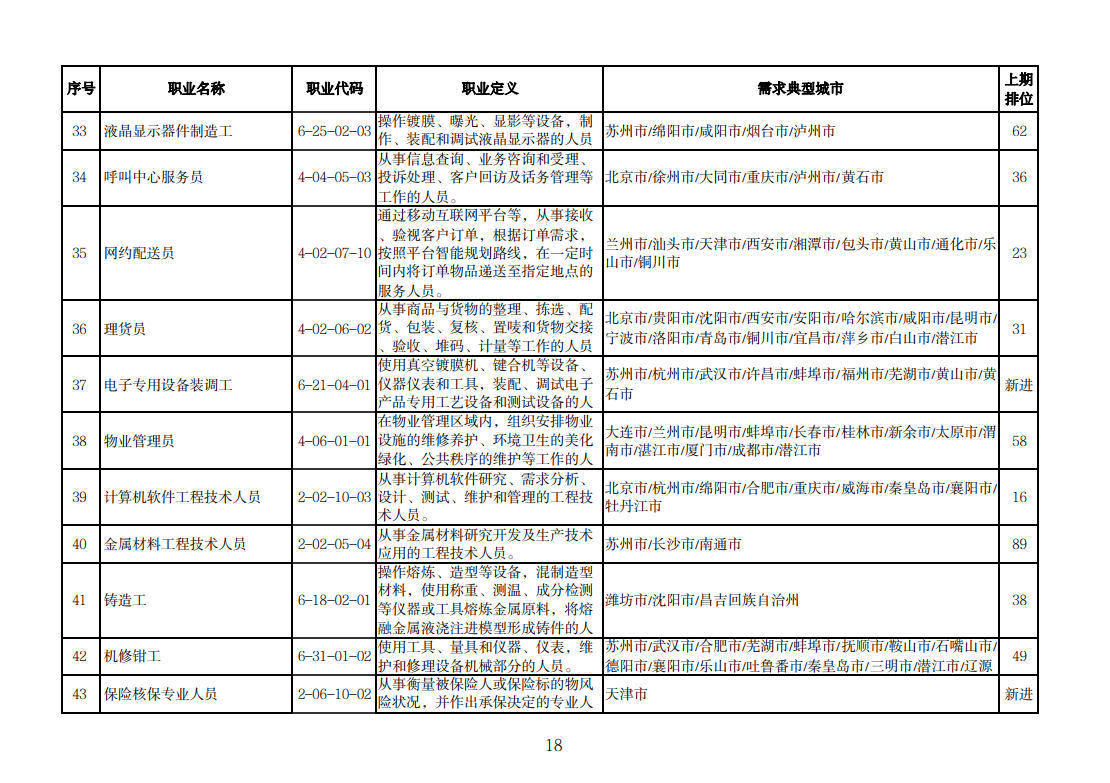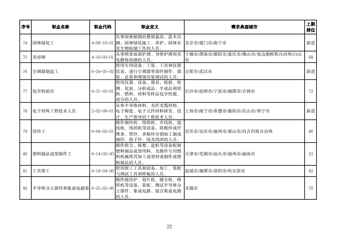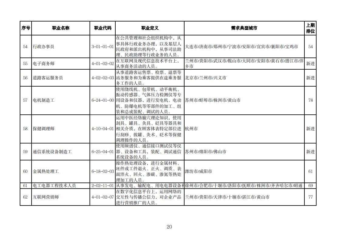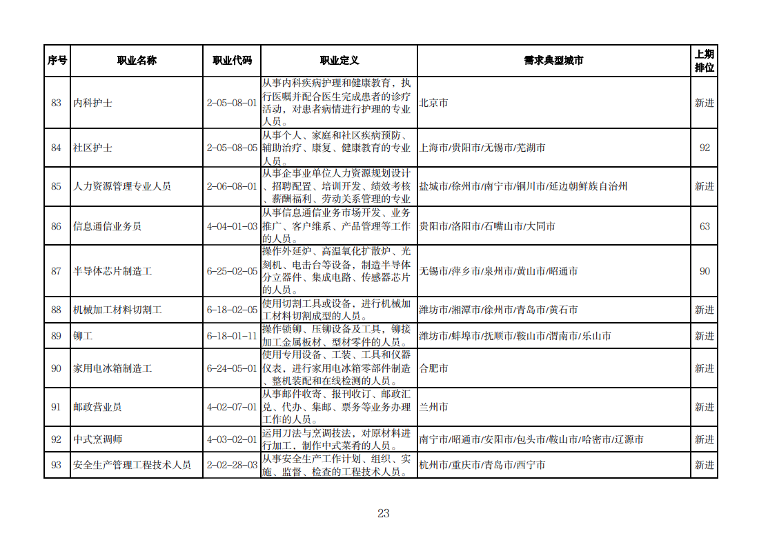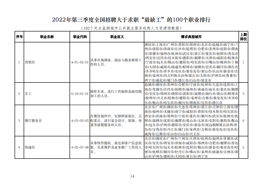 该排行是由中国就业培训技术指导中心组织102个定点监测城市公共就业服务机构,采集人力资源市场“招聘需求人数”和“求职人数”缺口排名前20的职业岗位信息,综合考量岗位缺口数量、填报城市数量等因素加工汇总整理形成。详情可查询人社部官网。