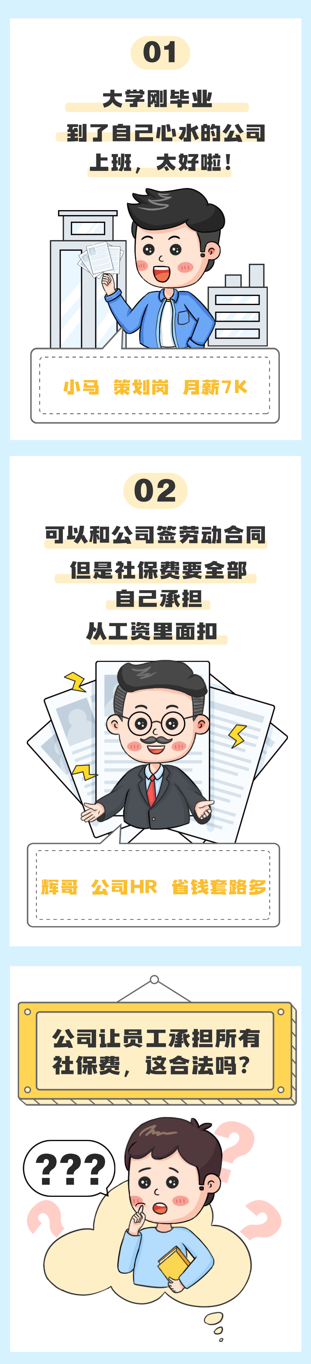 根据规定,职工应当参加养老保险、医疗保险、工伤保险、失业保险,其中,养老保险、医疗保险、失业保险由用人单位和职工共同缴纳,工伤保险由用人单位缴纳,职工不缴纳。因此,公司让员工承担所有社保费用是不合法的。