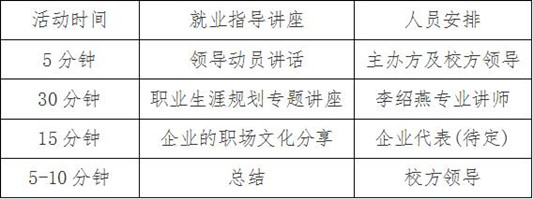 活动形式:针对该类学生面临继续升学还是就业的选择,举办一场职业生涯规划指导讲座,同时让学生了解社会用工情况及要求。