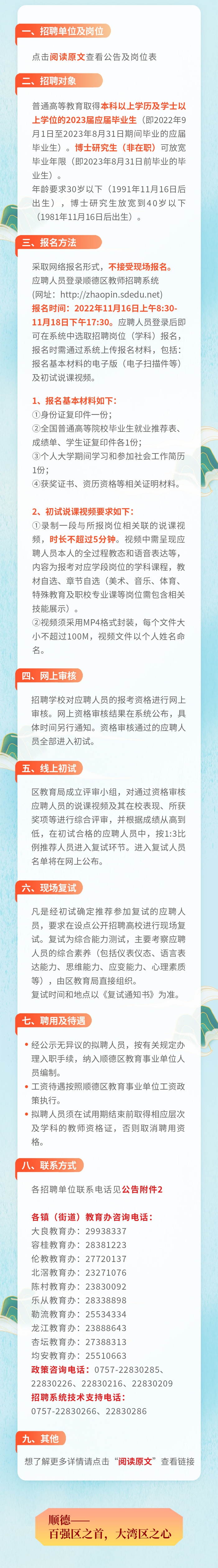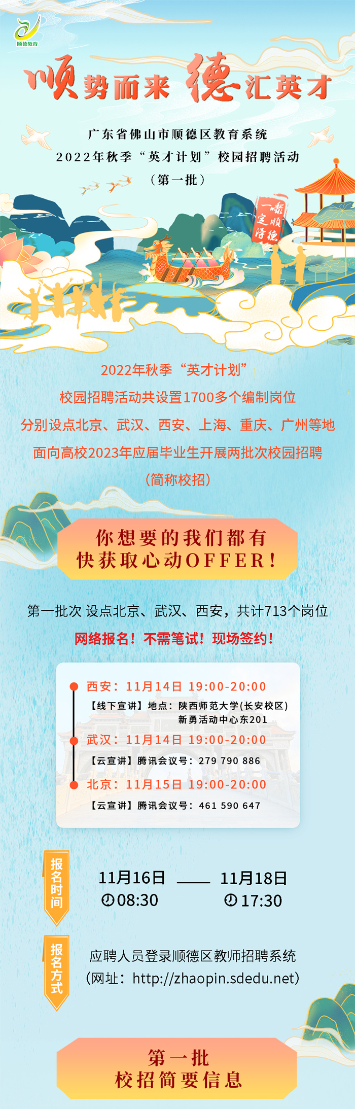 1700多个岗位!2022年秋季顺德教师招聘开始了!