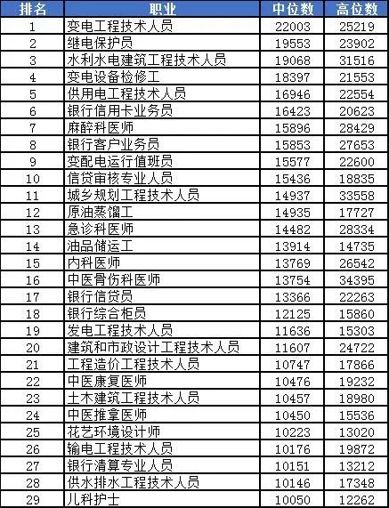 中位数月入过万的职业细类有29个,同比增加7个,其中专业技术人员增加5个,生产运输工人增加2个。