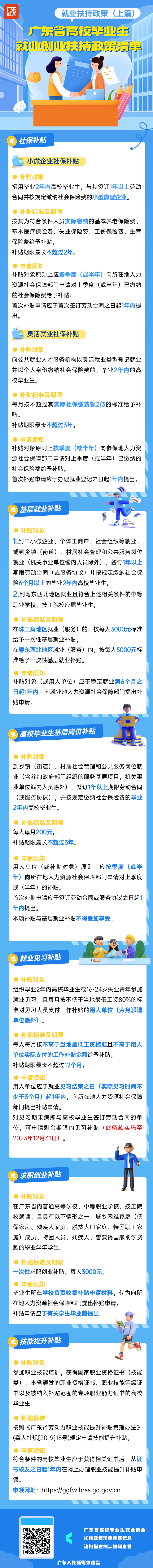 又是一年毕业季,各位毕业生们,知道高校毕业生在粤就业创业都享受哪些扶持政策吗?近期,广东人社将从就业扶持政策(上下篇)、创业扶持政策、综合扶持政策三方面介绍广东省高校毕业生就业创业扶持政策。