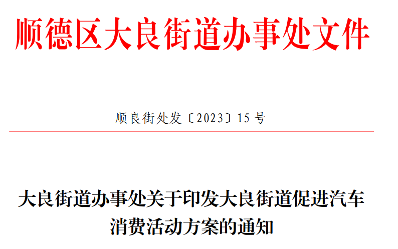 1.大良街道办事处关于印发大良街道促进汽车消费活动方案的通知