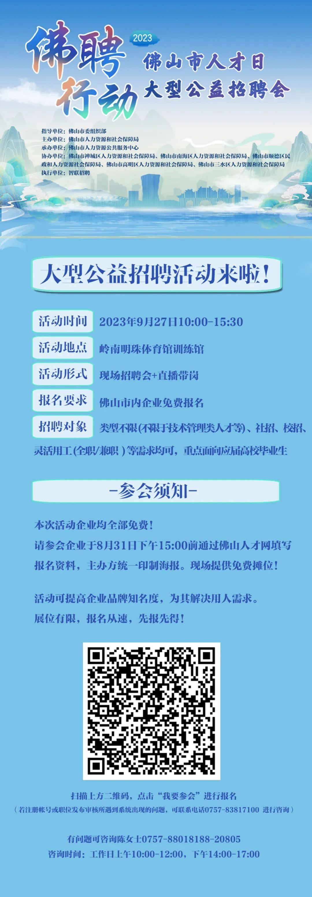 企业免费报名!2023年佛聘行动佛山市人才日大型公益招聘会来了