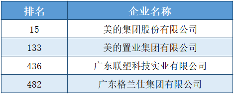 9月12日,全国工商联发布“2023中国民营企业500强”榜单和《2023中国民营企业500强调研分析报告》,其中,美的集团股份有限公司、美的置业集团有限公司、广东联塑科技实业有限公司和广东格兰仕集团有限公司4家顺德企业进入榜单。