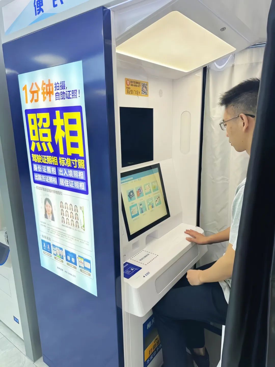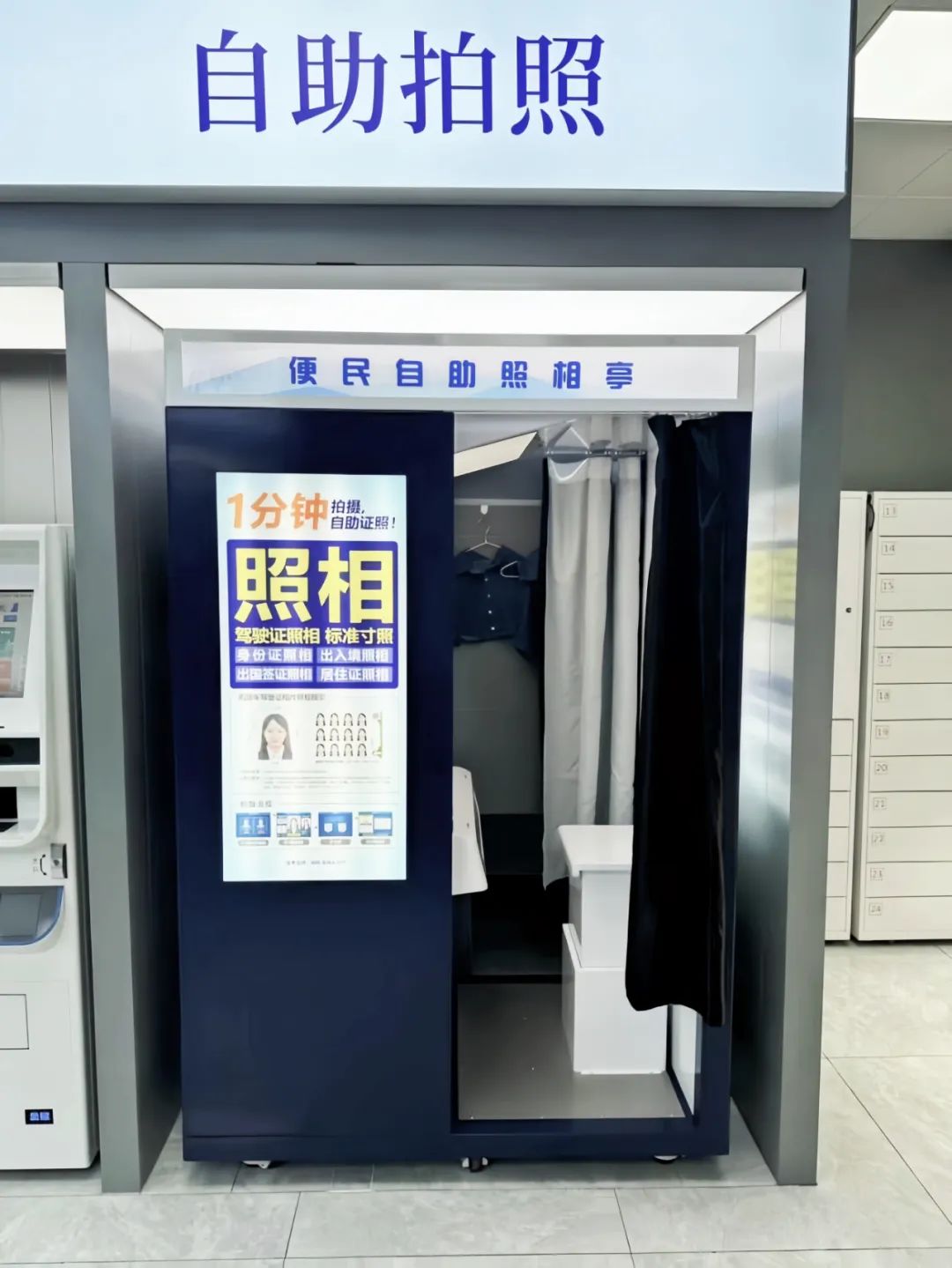 便民自助照相亭位于24小时自助服务区进门右手处,市民凭二代身份证进入后,按照设备屏幕提示选择所需要的服务,拍照成功即可打印照片和回执,整个过程最快1分钟完成!