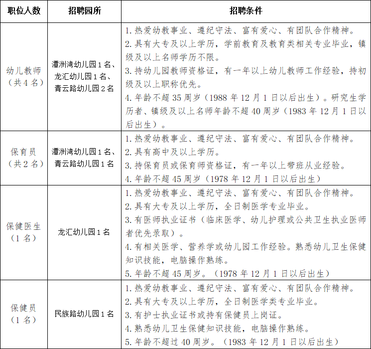 注意:招聘人员将按陈村镇各公办幼儿园招聘需求与应聘者意愿相结合进行统筹分配。