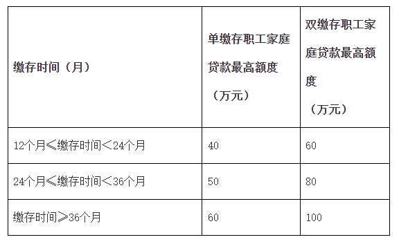 首套住房不同缴存时间对应不同的最高贷款额度。