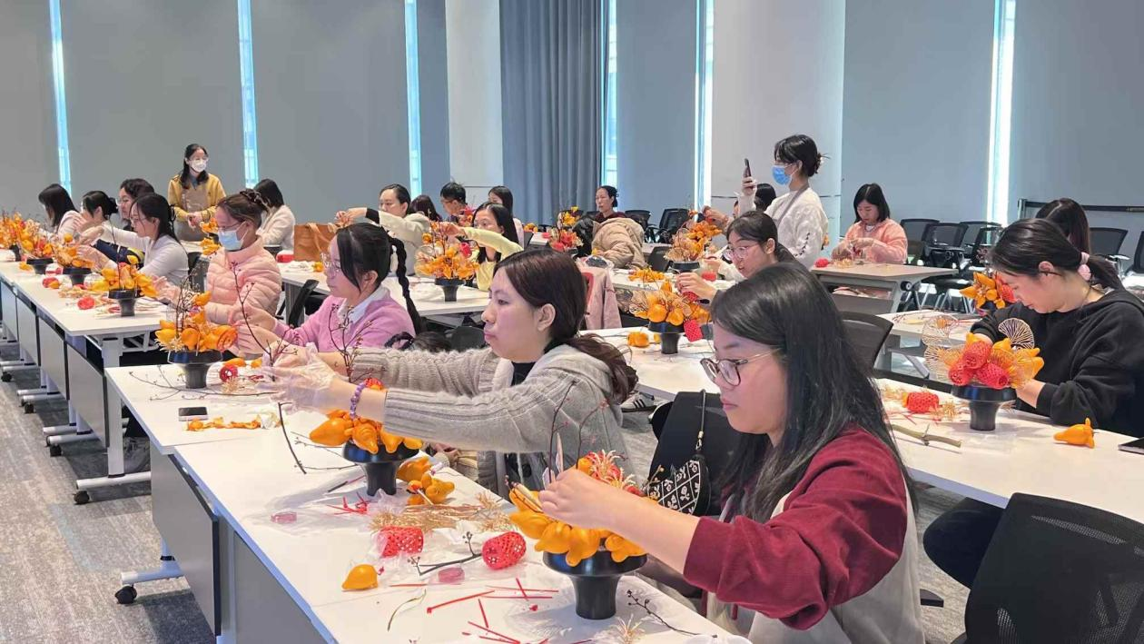 此次活动为优粤佛山卡人才提供了难得的放松与交流机会。平日忙碌于工作的人才们,在体验花艺手作的魅力,同时将这份对美好生活的期许融入作品之中。人才们相互交流心得,分享对春节文化的感悟与对新一年的憧憬,现场气氛热烈而温馨。