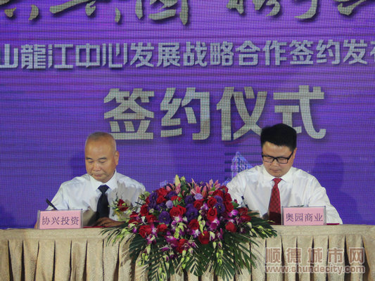 当日,龙江镇党委副书记、镇长何春云,龙江镇党委委员欧阳柏初,龙江总商会会长、广东协兴投资股份有限公司董事长蔡耀泉,奥园集团副总裁、奥买家集团总裁苗思华,以及龙江镇内外优秀企业家,共同见证了签约的激动时刻。