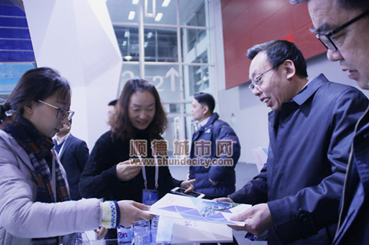 北滘镇镇长王崇曦(左一)到展览现场视察