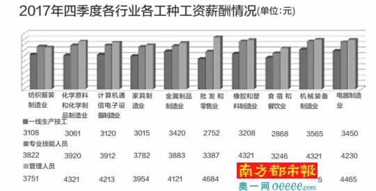 据用工监测数据显示,2017年第四季度顺德各行业、各工种的工资薪酬与去年同期相比有一定幅度上升。